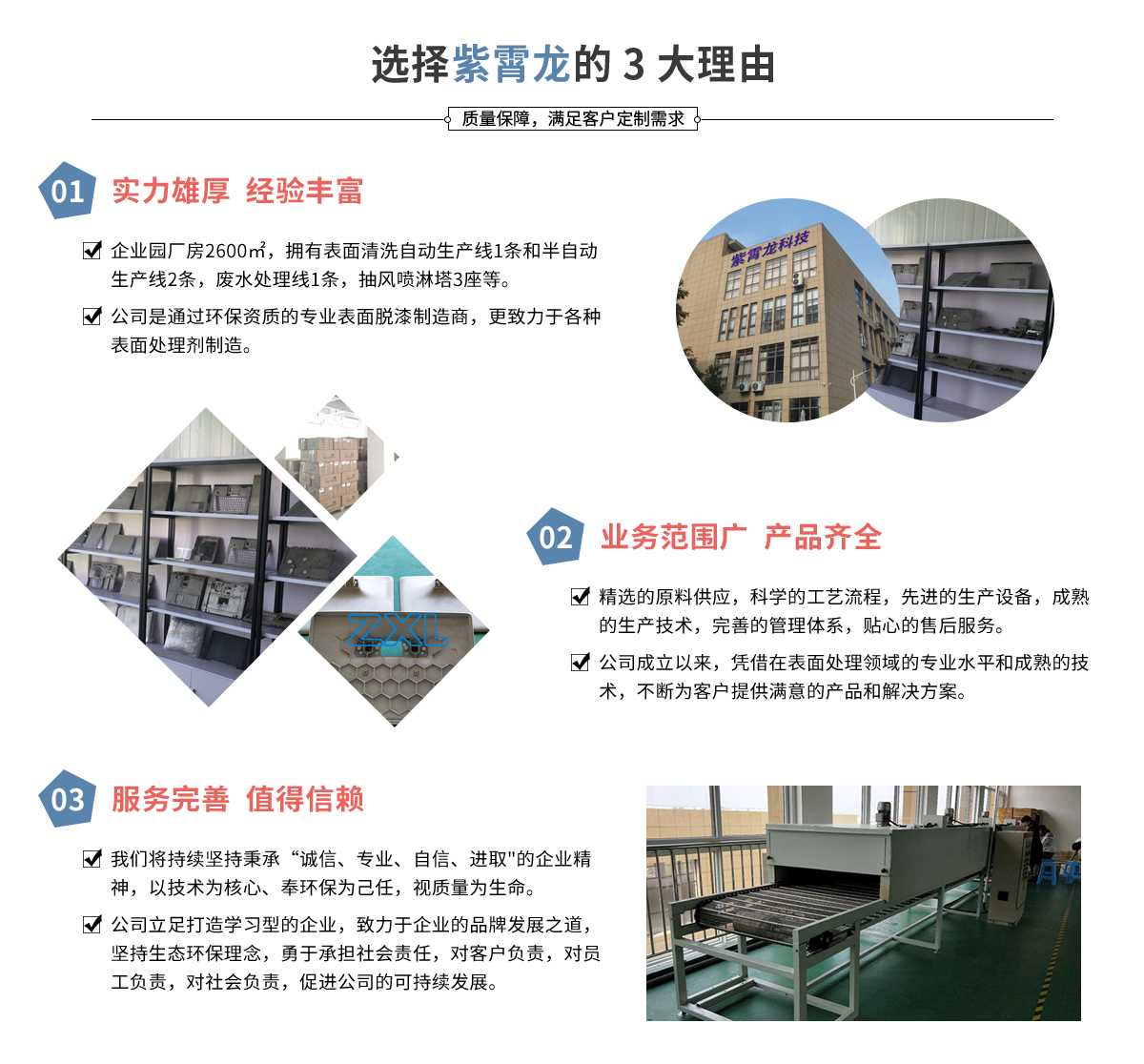 - 安徽紫霄龍科技發(fā)展有限公司成立于2017年,在安徽省舒城縣杭埠經(jīng)濟(jì)開發(fā)區(qū)工投企業(yè)園廠房2600㎡,建設(shè)脫漆、皮膜、脫脂、除油洗白等表面清洗自動(dòng)生產(chǎn)線1條和半自動(dòng)生產(chǎn)線2條,廢水處理線1條,抽風(fēng)噴淋塔3座等,采用水、表面活性劑處理工藝,形成金...